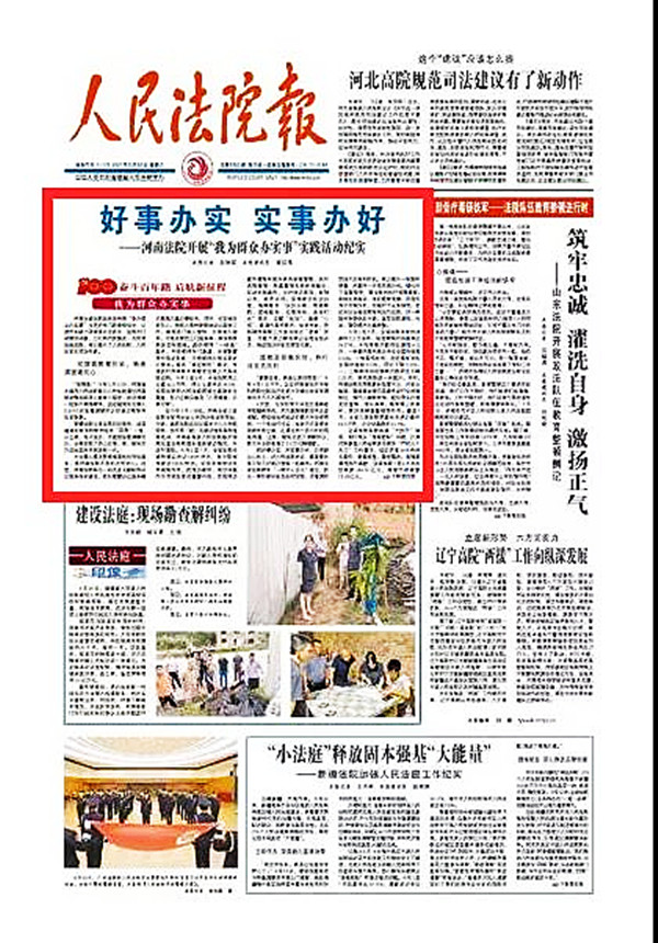 人民法院報頭條刊發(fā)河南法院經(jīng)驗做法:好事辦實 實事辦好