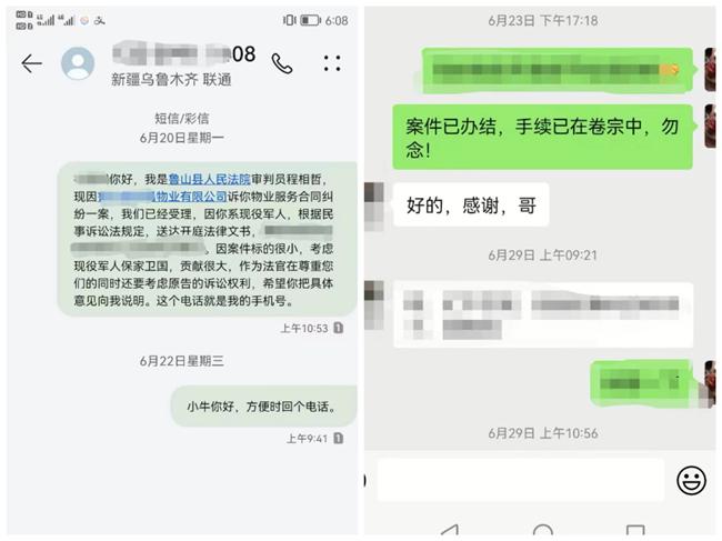 2019年8月10日,魯山縣某物業(yè)與業(yè)主小劉簽訂《服務(wù)協(xié)議》,自2020年1月14日起截止到起訴之日,小區(qū)物業(yè)“尋找”小劉催要物業(yè)費(fèi)未果,訴至法院。受理該案后,由于物業(yè)提供小劉的手機(jī)號碼為空號,工作一時難以開展。幾經(jīng)尋找,程法官聯(lián)系到小劉家人,得知小劉是一名現(xiàn)役邊防軍人。