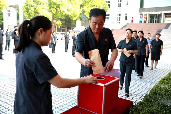 中新河南網(wǎng)8月5日電(李亞娜)8月5日,寶豐縣人民法院舉行“落實(shí)‘第一議題’制度筑牢政治思想根基”主題黨日活動(dòng),活動(dòng)由機(jī)關(guān)黨委副書記李應(yīng)敏主持,院黨組副書記、副院長(zhǎng)朱正栩及全體黨員參加。