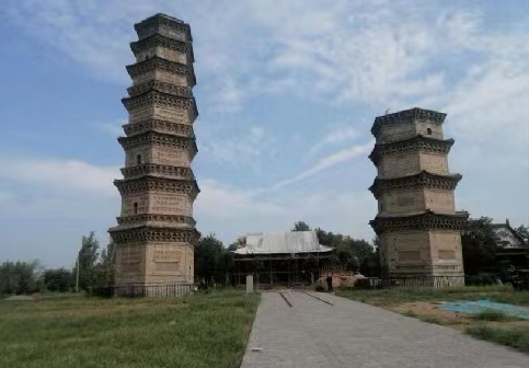 中新河南網(wǎng)9月1日電(蘇文軍 胡云峰)在中牟縣南部的黃店鎮(zhèn)冉家村東的一個荒崗上,有一對雙塔矗立著,這對雙塔就是在歷史上有名的壽圣寺雙塔,據(jù)縣文物部門負責(zé)人介紹,這對雙塔始建于宋代,已經(jīng)有著千年歷史,上邊的磚雕佛龕有一千多個,造型獨特,風(fēng)格各異,是目前中牟縣僅存的唯一一座有著千年歷史的古建筑。在這盡管沒有晨鐘暮鼓,但是還可以隨風(fēng)聽到雙塔之上送出的風(fēng)鈴之聲。