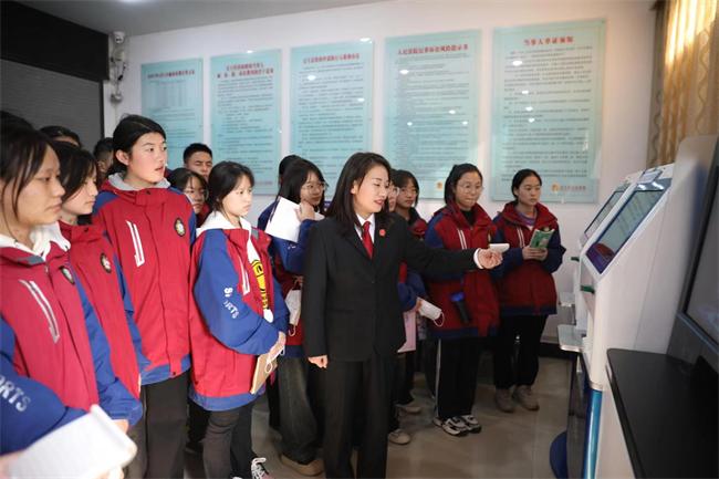 活動中,同學(xué)們在老師和講解員的帶領(lǐng)下參觀了訴訟服務(wù)中心,講解員向同學(xué)們介紹人民法院審判工作流程、“一站式”訴訟服務(wù)、智慧法院等相關(guān)工作,展示信息化便民服務(wù)設(shè)備,讓同學(xué)們感受信息化給司法審判帶來的便利。體驗了一次完整的安檢流程,同學(xué)們了解到安檢是保障法院安全的第一道關(guān)卡,可以有效排查危險物品、防止危害庭審安全事件發(fā)生。
