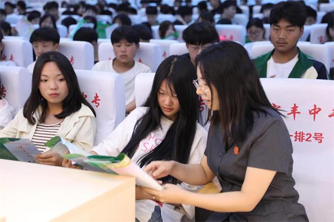 中新河南網(wǎng)(董媛媛)青少年是祖國的未來、民族的希望,也是世界觀、人生觀、價值觀形成的關(guān)鍵時期。為加強(qiáng)青少年法治教育,提高未成年人法律意識和自我保護(hù)意識,預(yù)防校園違法犯罪和意外傷害的發(fā)生,5月22日下午,寶豐縣人民法院普法干警到縣中等專業(yè)學(xué)校開展普法宣傳活動,為該校140余名師生帶來一堂生動的法治課。