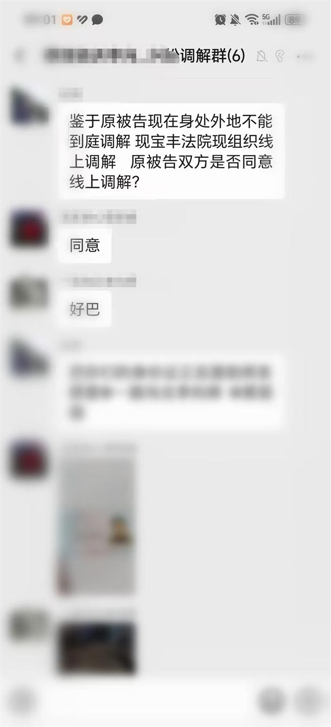 案件受理后,因原被告都在外地?zé)o法趕回來(lái),但是想通過(guò)司法程序解決問(wèn)題。承辦法官在對(duì)案情進(jìn)行分析后,本著便民、為民的司法理念,為了節(jié)省當(dāng)事人的訴訟成本,建議雙方當(dāng)事人以線上的方式進(jìn)行調(diào)解。該建議得到原被告雙方的同意,在法官的耐心指導(dǎo)下,經(jīng)過(guò)多次溝通,終于建立微信群組,雙方當(dāng)事人有了分別幾年來(lái)的首次“云見(jiàn)面”。