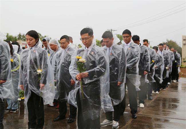 上午9時30分,迎著綿綿細雨,公祭儀式在莊嚴的《義勇軍進行曲》中拉開序幕。面對烈士紀念碑,干警們全體肅立,懷著沉重的心情向革命烈士們默哀。伴隨著深情的《獻花曲》,10名禮兵抬起花籃,正步向前,將花籃擺放在烈士紀念碑前。最后,干警們緩步繞行瞻仰烈士紀念碑、烈士英名錄,有序敬獻鮮花,寄托對人民英雄的緬懷之情。