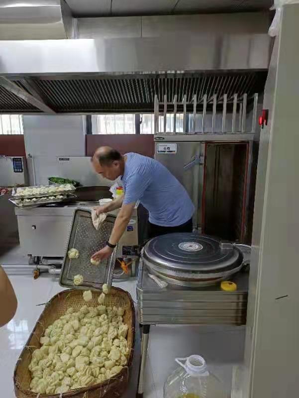 23日晚上劉燕燕、李朝娟、王霜三人通過溝微信溝通準(zhǔn)備為一線防汛人員和受災(zāi)群眾做點什么?三人商量就地取材,利用李朝娟的包子鋪為一線防汛人員和受災(zāi)群眾蒸油卷,所需物資由三人出資。社區(qū)婦聯(lián)主任兼農(nóng)家書屋文化專干劉燕燕利用村婦聯(lián)活動群進行宣傳組織,僅僅5個小時的時間收到捐贈面粉1000斤、食用油100斤、大蔥100斤、微信轉(zhuǎn)款3200元、參與蒸油卷的婦女同志達100余人,有些婦女同志還是自帶工具、蒸籠、面盆、調(diào)料等。由于前方物資緊缺我們設(shè)定了兩個點蒸油卷、點位1在留莊營新區(qū)大院內(nèi)2號點位在市直一幼新二街分園廚房。與新鄉(xiāng)市紅旗區(qū)區(qū)直第三幼兒園領(lǐng)導(dǎo)以及員工攜手支援災(zāi)區(qū)。又增加大米盒飯。