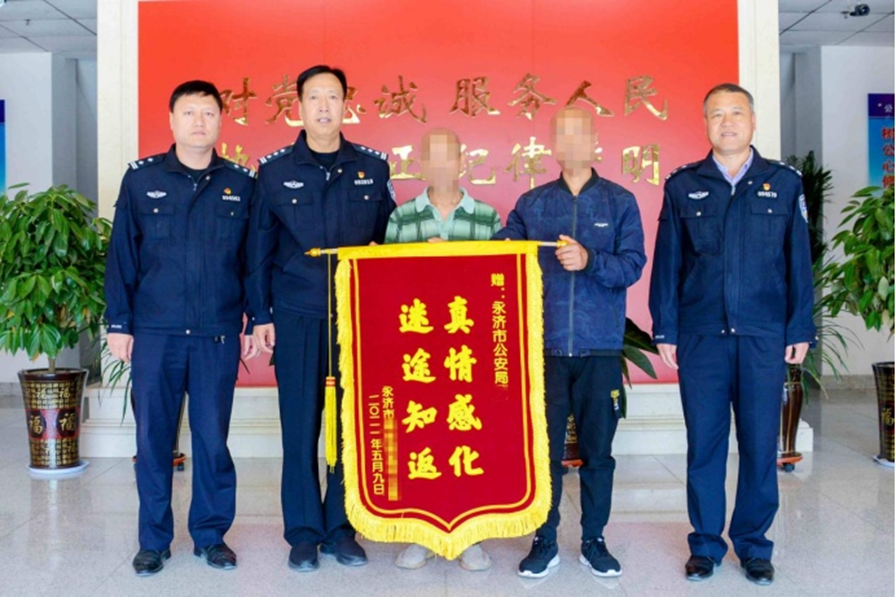 原籍山西的徐東,在當?shù)毓矙C關的教育下,也最終幡然悔悟。他的家人專程送來繡有“真情感化迷途知返”的錦旗,感謝政府的關愛和幫助。