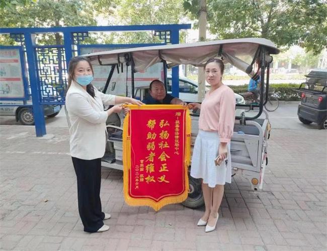 6月24日,曹某和其家屬來(lái)到該縣司法局公共法律服務(wù)中心,送來(lái)一面上書(shū)“弘揚(yáng)社會(huì)正義幫助弱者維權(quán)”的錦旗,以表對(duì)法律援助中心和援助律師的感謝。