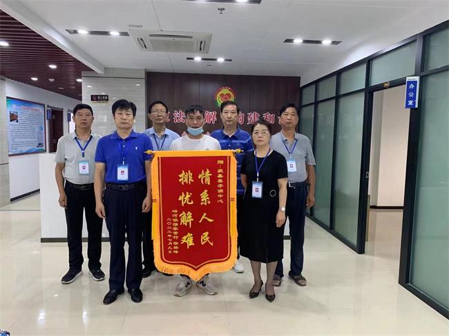 中新河南網(wǎng)7月22日電(李娜 張珂瑜)7月15日,輝縣市峪河鎮(zhèn)居民齊某來到獲嘉縣矛盾糾紛調(diào)解中心(下簡稱“矛調(diào)中心”),送上一面印有“熱心幫助群眾無私奉獻百姓”的錦旗,感謝矛調(diào)中心在其家屬交通事故賠償一案中的辛勤付出;當事人另一方也送來了“情系人民排憂解難”的錦旗,表達了對調(diào)解員的感謝之意。