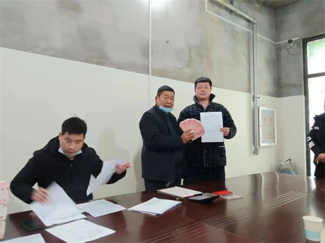 為確保協(xié)議履行,防止反悔,調(diào)解員全程跟進(jìn),督促各方按照協(xié)議約定履行承諾。2022年12月28日上午,在調(diào)解員的見證下,小區(qū)開發(fā)商將320萬元工程款支付給了建筑公司,隨后,建筑公司以班組為單位,將320萬元現(xiàn)金分發(fā)到了農(nóng)民工的手里。至此,一場因拖欠農(nóng)民工工資引發(fā)的群體性糾紛得到圓滿解決。