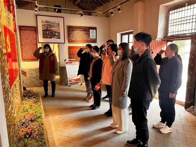 在劉橋縣委舊址展館內(nèi),全體黨員干部在講解員的介紹下再次回顧了徐一榮、徐一舟等先烈的革命事跡,在一張張老照片和一件件舊實物前,他們佇立凝神,沉思良久,深刻地感受到了革命先烈們崇高的革命理想、堅定的革命意志和大無畏的革命精神。最后,全體黨員面對鮮艷的黨旗,莊嚴(yán)地高舉右拳,飽含力量和激情,重溫入黨誓詞,用最鏗鏘的聲音表達(dá)最堅定的決心。