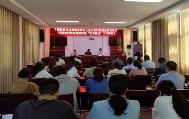 中新河南網(wǎng)(蔣凌霞 蘇清濤)為進(jìn)一步貫徹落實(shí)省市關(guān)于加強(qiáng)信用體系建設(shè)的決策部署,引導(dǎo)和幫助市場(chǎng)主體及時(shí)糾正失信行為、重建重塑信用,6月3日,獲嘉縣司法局集中學(xué)習(xí)《關(guān)于實(shí)行行政處罰決定和行政處罰信息修復(fù)告知“兩書同達(dá)”工作制度》。會(huì)議由該局黨組書記、局長(zhǎng)馮濤主持,全體班子成員、機(jī)關(guān)黨員干部50余人參加。