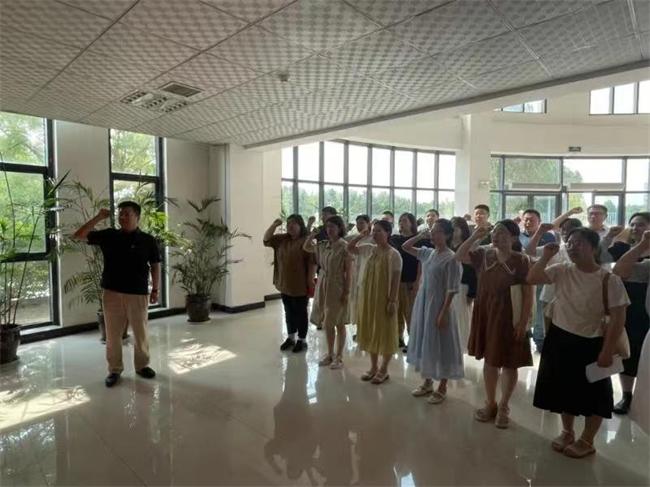 接著,課堂搬到了室外,全體黨員來(lái)到了張慶連先進(jìn)事跡展覽館,開(kāi)展了一次“沉浸式教學(xué)”。在館內(nèi),黨員們跟隨著講解員的步伐,深刻感受到了張慶連同志對(duì)黨忠誠(chéng)、勤學(xué)善思、肯于鉆研、躬身農(nóng)林的偉大品格,那些質(zhì)樸的文字、珍貴的照片生動(dòng)展示了張慶連同志無(wú)私奉獻(xiàn)的光輝歷程。最后全體黨員懷著無(wú)比崇敬的心情,在鮮紅的黨旗下,莊嚴(yán)宣誓。