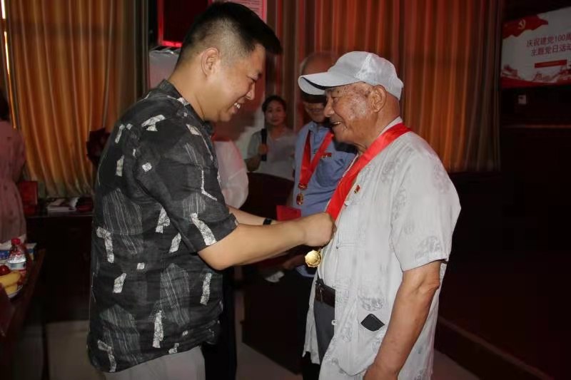 薪火相傳,初心不忘。“光榮在黨50年”老黨員代表呂春書、蘇子清向在座各位黨員分享了自己入黨時候的故事,回顧了自身的工作經(jīng)歷,也表達(dá)了對黨關(guān)心關(guān)懷的感謝和繼續(xù)為黨的事業(yè)增光添彩的堅定決心。隨后,他們在鮮花和掌聲中為支部的年輕黨員代表佩戴黨徽并寄予殷切希望。