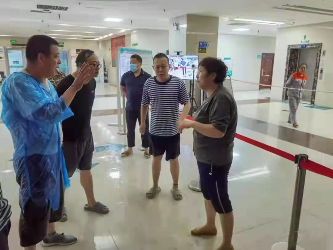 7月21日傍晚,新鄉(xiāng)市降雨轉(zhuǎn)為特大暴雨,據(jù)氣象部門預(yù)測,未來幾個小時,雨勢仍將持續(xù)。晚上七點,趙松廣同志正在家吃飯,眼看著暴雨如注,地面開始有積水了,他放下筷子,披上雨衣就跑去醫(yī)院。到了辦公室碰上了后勤科的其他準(zhǔn)備回家的職工,經(jīng)過簡短的分析商定,一場防汛搶險攻堅戰(zhàn)迅速打響。面對困難不退縮,面對壓力不妥協(xié),為了鼓舞干勁,趙松廣同志身先士卒,冒著大雨帶著后勤職工去醫(yī)院重點科室巡查,病房大樓地勢較高暫無危險,但是電工房、倉庫、放射科、休養(yǎng)區(qū)和康復(fù)科積水上漲很快。晚上8點,電工房的積水已經(jīng)到小腿肚了,趙松廣同志帶領(lǐng)后勤職工去搬運(yùn)提前準(zhǔn)備好的沙袋來堵住這些科室的門口。聽說康復(fù)科東西兩頭的衛(wèi)生間下水道已經(jīng)排不下去水,水還在往外冒著,并且康復(fù)科一樓住著一些腿腳不便的患者,擔(dān)心患者和值班醫(yī)護(hù)人員的人身安全,他馬上帶領(lǐng)大家趕到老病房大樓康復(fù)科一層,碰到了已經(jīng)在此組織救援的齊英書記,他邊救援邊匯報之前幾個重點崗位的防汛處理情況,并請示齊英書記:電工房放置著整個家屬區(qū)的配電室以及部分醫(yī)院用電,看著雨勢,估計電工房的沙袋高度不夠,建議馬上斷電,晚上10點,家屬區(qū)斷電。他們協(xié)助康復(fù)科醫(yī)護(hù)人員將病人從一樓轉(zhuǎn)移到二樓,關(guān)閉中央空調(diào)等部分電源,只留下了照明用電,至此,康復(fù)科搶險工作基本就緒。