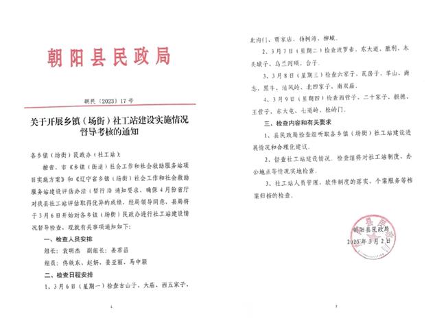中新河南網(wǎng)3月9日電(田波濤)為貫徹落實(shí)省民政廳關(guān)于加強(qiáng)鄉(xiāng)鎮(zhèn)(街道)社會(huì)工作站建設(shè)工作部署,推進(jìn)社工站建設(shè)規(guī)范化法治化,確保全縣28個(gè)鄉(xiāng)鎮(zhèn)(街道)社會(huì)工作站工作高質(zhì)量運(yùn)轉(zhuǎn),完成規(guī)定的工作任務(wù),3月6、7、8、9日分別對朝陽縣民政局對轄區(qū)內(nèi)所有社工站的工作進(jìn)行督導(dǎo)考察。