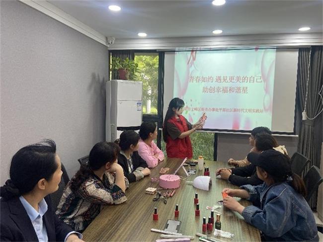 5月15日上午,平原社區(qū)開展“青春如約,遇見更美的自己”助創(chuàng)幸福和諧星活動。課程中,美妝老師先介紹了一下美妝的意義,然后細(xì)致講解了一下美妝的理論,參與的美妝愛好者根據(jù)自己的愛好,結(jié)合老師的講解,對美妝有了更進(jìn)一步的認(rèn)識。