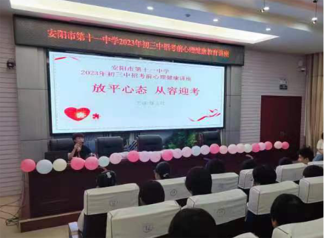成長路上,鮮花相伴,風雨同行。為助力初三學子,激發(fā)潛能,減輕壓力,戰(zhàn)勝自我,實現超常發(fā)揮,圓夢中考,安陽市第十一中學在校領導的大力支持和劉文紅主任的積極籌備下,6月13日-6月14日下午在大會議室開展以“放平心態(tài),從容迎考”為主題的減壓賦能心理講座。