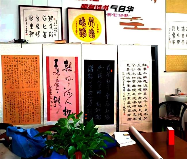 在龍安區(qū)文化館龍圖街甲骨文書屋,開展的書法、繪畫現(xiàn)場書寫繪畫和展示活動,分行草、篆隸、楷書、國畫四個項目,并懸掛了來自高校老師和8名書法骨干創(chuàng)作的書法作品30余幅,讓市民和書畫愛好者在交流與創(chuàng)作中,悅享學習資源,同享美好生活,體驗到“繪畫藝術(shù)賦于文化生活的獲得感和幸福感。為轄區(qū)群眾呈現(xiàn)出了書法藝術(shù)傳承與創(chuàng)新的時代特征。