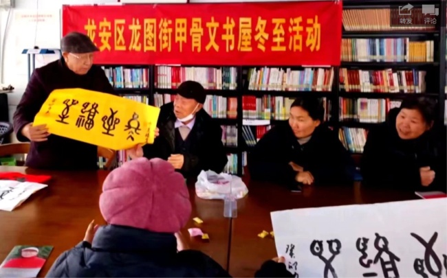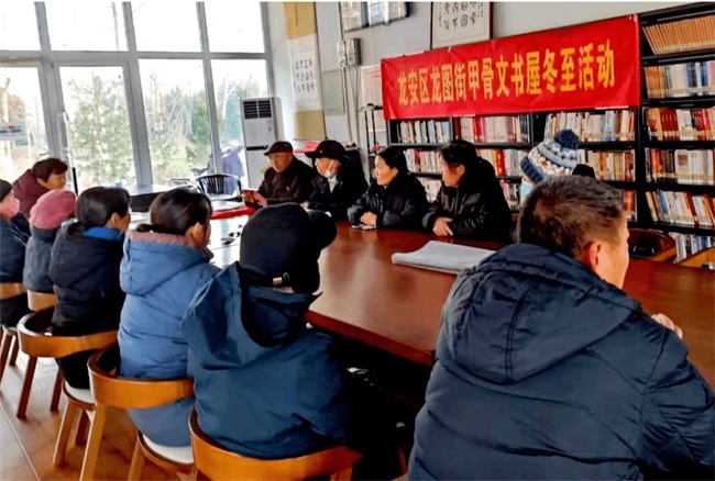 龍安區(qū)甲骨文書屋,2023年冬至下午三時,來自社區(qū)的居民,老退休教師喜聚一起,暢談回憶歷年冬至的情景。