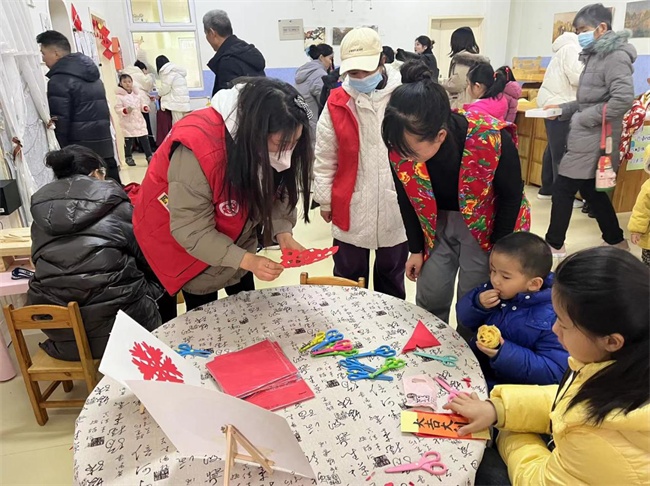 當(dāng)日下午,在一片歡呼聲中,“廟會”活動拉開帷幕。“廟會”里設(shè)有傳統(tǒng)小吃街、民俗游樂街、義賣活動等。在現(xiàn)場,參與活動的小朋友和大人們可以親手寫對聯(lián)、購買自己喜歡的年貨、品嘗具有年味的湯圓、動手剪出心儀的年畫,歡歡喜喜迎接新年的到來;顒蝇F(xiàn)場,還設(shè)置了獨(dú)具特色的游戲活動。套圈、運(yùn)球、傳統(tǒng)玩具競賽、猜燈謎.……“廟會”把民俗文化融入游戲當(dāng)中,讓大家在游戲中感受到傳統(tǒng)文化的魅力。同時,社區(qū)工作人員還對垃圾分類和反詐騙進(jìn)行宣傳,通過設(shè)置分類垃圾桶等形式向居民普及垃圾分類知識,提醒居民們保護(hù)環(huán)境,垃圾入框。