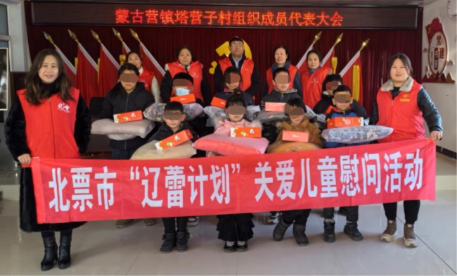 1月31日下午,市聚和中心理事長(zhǎng)佟鐵東和蒙古營(yíng)鎮(zhèn)民政助理冷雪英帶領(lǐng)社工和志愿者到蒙古營(yíng)鎮(zhèn)塔營(yíng)子村部集中慰問困難兒童。