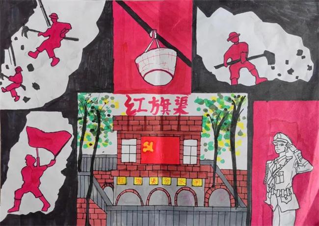 紅旗渠精神我尋訪,紅旗渠精神我來講,紅旗渠美景我來畫,紅旗渠歌曲我來唱。