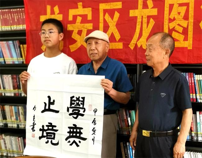 今年甲骨文書屋管理人員和龍圖社區(qū)領(lǐng)導(dǎo)特意為青少年書寫贈送書法作品,交流傳統(tǒng)文化歡度節(jié)日。