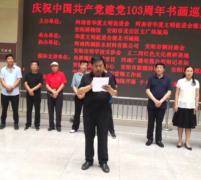 來自協(xié)辦單位河南四福防水材料有限公司、安陽市鋼材行業(yè)商會、安陽市科學(xué)技術(shù)協(xié)會的干部職工,來自媒體支持單位的央視廉政中國欄目、河南廣播電視臺安陽記者站、安陽融媒體中心、安陽市新媒體協(xié)會、安陽市短視頻聯(lián)盟、中國雷鋒報安陽工作站的新聞記者及工作人員和安陽市的廣大書畫家、書畫愛好者、安陽博物館干部職工、市民100余人參加了開幕式。市科協(xié)組織的文藝團(tuán)隊到場表演了精彩的文藝節(jié)目。
