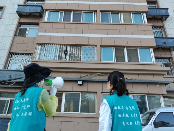 嚴守小區(qū)關(guān)卡,通過喇叭廣播、電話、居民微信群通知等方式,倡導居民戴好口罩,掃碼出行,同時引導居民前往就近核酸檢測點參與核酸檢測。