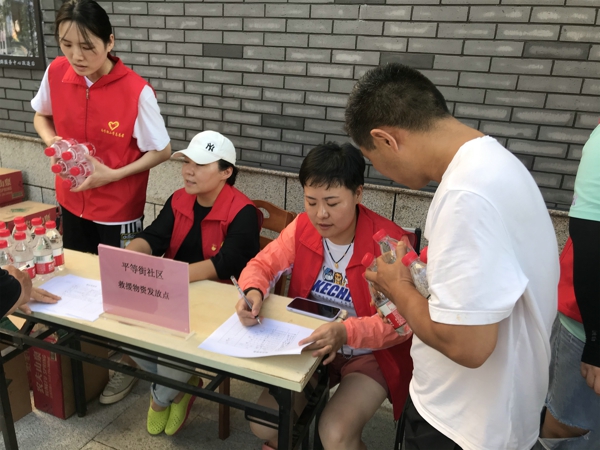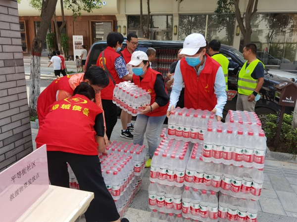 在平等街服務(wù)中心,老師們頂著烈日,不怕苦不怕累,與社區(qū)工作者通力合作為轄區(qū)居民送上礦泉水、面包等生活物資,不時(shí)地得到街坊群眾的嘖嘖稱贊,感謝之聲連綿不絕,引得無數(shù)群眾自發(fā)參與到志愿服務(wù)隊(duì)伍中來,繪就了一幅幅互幫互助的暖心畫卷。面對近期仍然無法正常供水的現(xiàn)狀,該校副校長遆亞娜告訴周邊的居民用水用電隨時(shí)到南學(xué)街小學(xué),學(xué)校的大門永遠(yuǎn)為大家敞開。