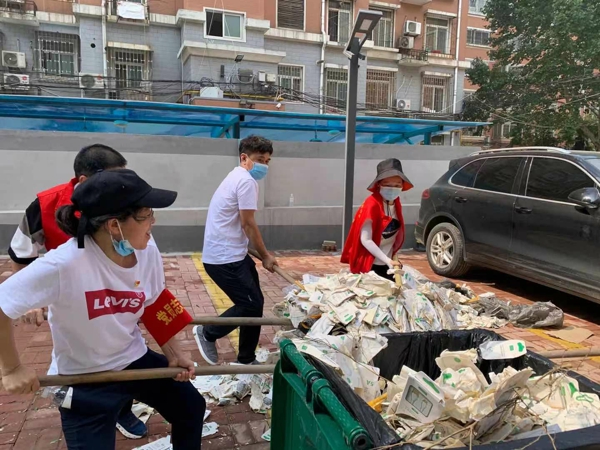 上午8:30,學(xué)校黨員教師在黨支部書記馬建功和校長宋建勇的帶領(lǐng)下,來到了隴海路266號金譽良苑小區(qū),馬建功書記再給辦事處工作人員協(xié)調(diào)過后首先確定了清掃區(qū)域。隨后,在馬書記給大家進(jìn)行了詳細(xì)分工后,大家便開始了清掃工作,清淤泥、掃污水、除雜草、搬雜物、運垃圾,黨員老師們分工明確,團(tuán)結(jié)協(xié)作,清掃工作有序開展。兩個小時過后,老師們的鞋子被泥水濺臟,衣服被汗水浸透,口罩更換了一個又一個,但是當(dāng)看到小區(qū)從剛開始的臟亂不堪,逐漸變的干凈整潔,當(dāng)聽到小區(qū)區(qū)民們的一聲聲贊嘆和感謝,看到居民們豎起的大拇指,老師們也都露出了自豪的笑容。