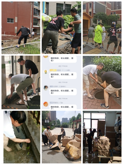 7月20日,暴雨持續(xù)傾盆而下,道路上排泄不及的雨水開(kāi)始倒灌,大量雨水伴著泥漿、雜物沖進(jìn)外小校園,涌入教學(xué)樓。災(zāi)情就是命令,外國(guó)語(yǔ)小學(xué)校領(lǐng)導(dǎo)班子第一時(shí)間趕赴兩個(gè)校區(qū)搶險(xiǎn)救災(zāi)。劉娜校長(zhǎng)、張鵬召主任和值班教師吳勁松、劉艷鴿、周丹等在翰林校區(qū)搬運(yùn)沙袋堵塞積水;陳永貴副校長(zhǎng)、時(shí)永軍主任、保安、保潔一起冒著暴雨疏通排水管道雜物、排查室內(nèi)漏水情況;韓輝副校長(zhǎng)帶領(lǐng)朗悅校區(qū)值班教師關(guān)龍飛,以及保安、保潔將一樓電腦、教材教具、圖書(shū)等物品一一挪移,并在各出口擺上一層又一層的沙袋,盡力抵制洪水沖進(jìn)教學(xué)樓。就這樣,他們忙碌了一天一夜,無(wú)怨無(wú)悔堅(jiān)守著我們的校園,這一夜風(fēng)雨飄搖,這一夜愛(ài)比雨大,責(zé)任比水深!