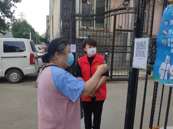 黨員教師張一第一時間參與到區(qū)教育局統(tǒng)一安排的黨員教師下沉社區(qū)參與疫情防控工作,一早就守候在檢測點展開工作,登記信息、維持秩序、協(xié)助未申領健康碼的人員申領等。