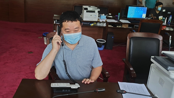 窗外的白楊在風(fēng)中搖曳,災(zāi)后重建的工地發(fā)出機(jī)器切割的聲音,驕陽烤的人透不過氣。在管城區(qū)疫情防控會議室里,接線員周勝利老師面帶微笑,邊聽電話邊記錄每位居民的訴求,同時把省、市、區(qū)的疫情防控政策傳遞給大家。
