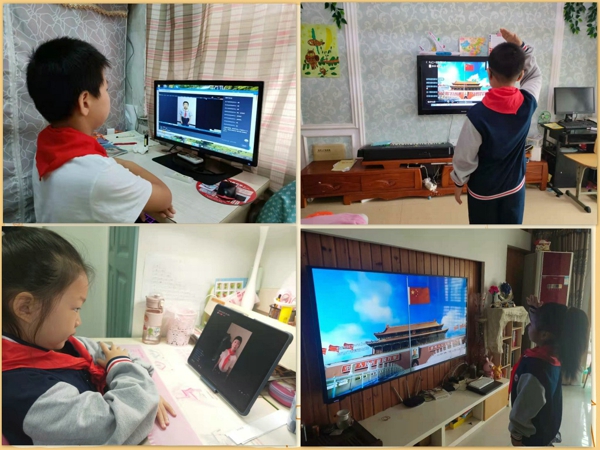 少先隊(duì)員在中隊(duì)輔導(dǎo)員的積極組織下,準(zhǔn)時(shí)進(jìn)入了班級(jí)線上升旗直播。當(dāng)視頻中雄壯的國(guó)歌奏響、鮮艷的五星紅旗冉冉升起時(shí),少先隊(duì)員神情嚴(yán)肅,挺胸抬頭目視國(guó)旗,情不自禁唱起了國(guó)歌,心中充滿了無(wú)限的憧憬和展望。隨后,大家共同觀看了少先隊(duì)員為老師精心錄制的慶祝教師節(jié)視頻:《老師,您辛苦了》。少先隊(duì)員用情真意切的話語(yǔ),表達(dá)了對(duì)老師的深深感恩之情,使老師感受到了節(jié)日的溫馨。少先隊(duì)員代表劉安澤無(wú)不感慨地說(shuō):“加減乘除,算不盡老師的無(wú)私奉獻(xiàn);詩(shī)詞歌賦,頌不完對(duì)老師的滿懷崇敬,感謝老師,給了我們放眼世界的慧眼,感謝老師,幫我們指明人生的方向。”