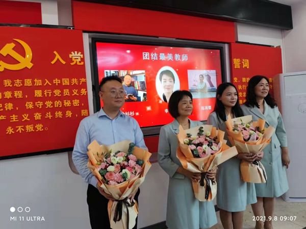 為選樹(shù)先進(jìn)典型榜樣,校區(qū)領(lǐng)導(dǎo)對(duì)公選出的“團(tuán)結(jié)最美教師”進(jìn)行頒獎(jiǎng)。校區(qū)執(zhí)行校長(zhǎng)劉彥霞也號(hào)召全體教師以這些身邊先進(jìn)典型為榜樣,不忘為黨育人、為國(guó)育才的教育初心,在新時(shí)代社會(huì)主義建設(shè)中擔(dān)當(dāng)起育人使命。