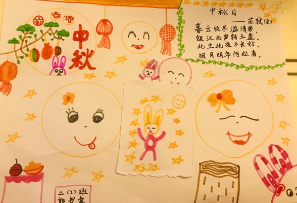 “中秋節(jié)是我們傳統(tǒng)節(jié)日,也是我們對于家庭團(tuán)圓美滿的美好祈盼。家是最小國,國是最小家,我們要像石榴籽一樣緊密團(tuán)潔在一起,這樣才是大團(tuán)圓……”班主任老師結(jié)合疫情期間全國各地人民之間相互幫助的感人事跡,引導(dǎo)學(xué)生從愛小家到愛大家。班會活動后,學(xué)生們還通過吟誦中秋詩歌、繪畫中秋月餅等形式全面深入了解中秋節(jié)。