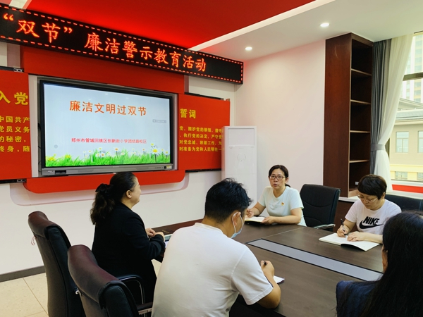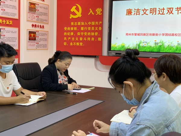會議中,黨支部書記李莉娟帶領全體教師學習了《新時代中小學教師職業(yè)行為十項準則》,通報了《省紀委監(jiān)委通報了5起近期查處的違反中央八項規(guī)定精神典型案例》。對全體教師提出“廉潔文明過雙節(jié)”的倡議,同時還倡議全體教職工在“雙節(jié)”期間,杜絕食品浪費、厲行節(jié)儉節(jié)約。