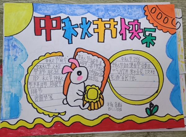 活動中,隊員收集有關中秋節(jié)的來歷、習俗、美食等知識,或者與中秋有關的故事、詩歌、書籍、與家人一起體驗中華民族傳統(tǒng)節(jié)日的魅力所在,通過繪制手抄報或者中秋賀卡寄托著最真摯的節(jié)日祝福,也進一步增強了隊員們對中秋這一傳統(tǒng)節(jié)日的了解。