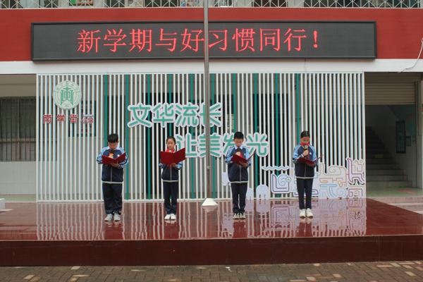 在主題升旗儀式上,該校大隊(duì)輔導(dǎo)員王曉杰向大家發(fā)出了倡議,他希望全體師生從新學(xué)期開(kāi)始結(jié)合學(xué)校“與好習(xí)慣同行”養(yǎng)成教育課程綱要,從學(xué)生日常學(xué)習(xí)生活等各個(gè)方面開(kāi)始規(guī)范學(xué)生的日常行為,結(jié)合學(xué)生的年齡特點(diǎn)共同制定不同的評(píng)價(jià)體系和標(biāo)準(zhǔn),使每個(gè)學(xué)生都能積極參與并從中收獲成長(zhǎng)。