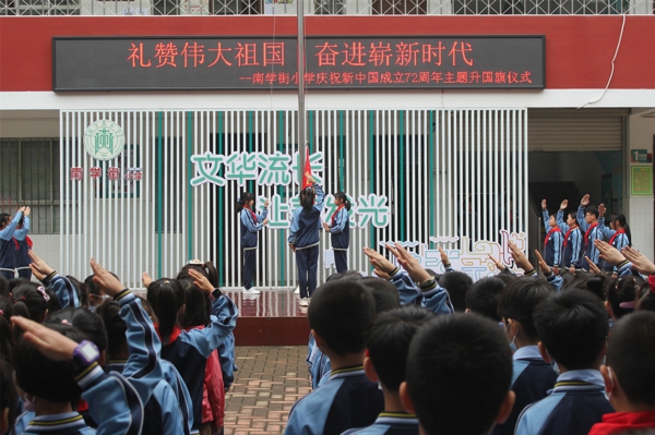 9月27日南學(xué)街小學(xué)舉行迎國慶主題升旗儀式