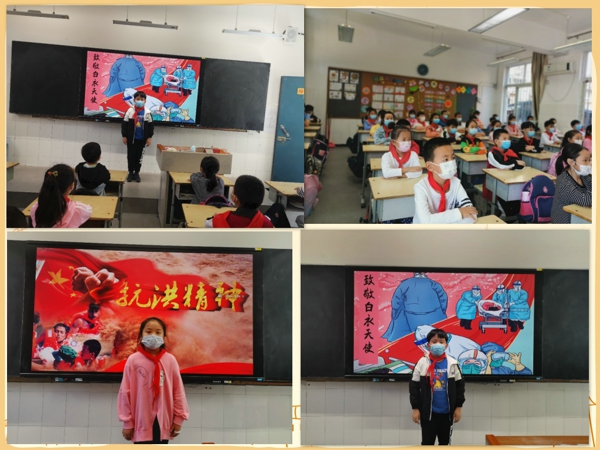 活動(dòng)中,隊(duì)員們共同參與講述黨史故事,探尋黨的故事,感悟黨的初心,并通過(guò)講述抗洪、防疫“車輪戰(zhàn)”“雙線站”中“天使白”“消防橙”等沖鋒一線的動(dòng)人故事,為黨獻(xiàn)上一份真摯的賀禮。輔導(dǎo)員孟祥利老師分階段講述了黨的歷史和共產(chǎn)黨的奮斗歷史,并讓少先隊(duì)員們交流心得,讓他們堅(jiān)定自己的理想、堅(jiān)定自己的愛(ài)國(guó)心。少先隊(duì)員們認(rèn)真聆聽(tīng)黨史故事,充分了解先烈事跡,增強(qiáng)少先隊(duì)員們的愛(ài)國(guó)熱情和奮斗熱情。