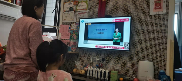 家長(zhǎng)和孩子一同觀看安全教育講解