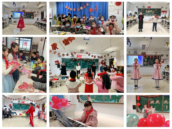 為落實(shí)上級(jí)疫情防控的相關(guān)要求,此次匯演,由各班老師組織學(xué)生在各自班級(jí)內(nèi)進(jìn)行。匯演開始前,學(xué)校給學(xué)生布置了一項(xiàng)手工實(shí)踐作業(yè),讓學(xué)生為此次匯演制作迎新的裝飾品及祝福賀卡,各班老師帶領(lǐng)同學(xué)們用學(xué)生精心制作的裝飾品一起布置教室,一個(gè)個(gè)教室被“裝扮”得喜氣洋洋,新年味兒越來越濃。