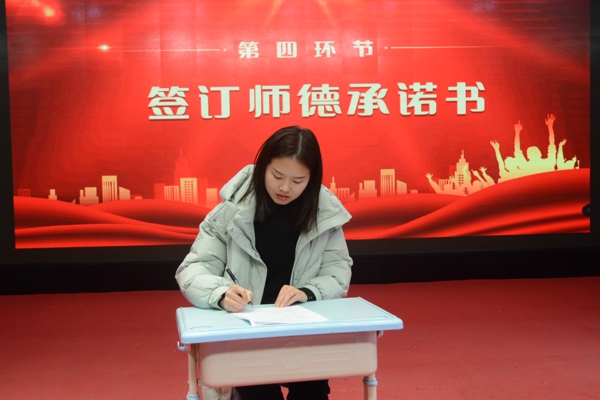 身邊的榜樣更能激勵(lì)成長,該校的師德先鋒肖利曉老師結(jié)合自身的教育經(jīng)歷,從“和諧的環(huán)境浸潤、和美的班級文化、溫暖有愛的班風(fēng)”三個(gè)方面分享了她的教育感悟。接著孫冬梅校長為全體教師贈送了一份新學(xué)期特別“禮物”,她用一張張照片記錄了每位教師辛勤工作的身影,并用生動的語言講述鏡頭背后的動人故事,愛與真情匯聚成工一最美畫卷。之后,孫校長又帶領(lǐng)全體教師學(xué)習(xí)文件精神,同時(shí)對師德師風(fēng)建設(shè)提出了新要求和期望;在孫冬梅校長的領(lǐng)誓下,全體教師重溫教師誓詞,莊嚴(yán)宣誓,并簽下了師德師風(fēng)承諾書,一個(gè)名字、一份責(zé)任、一個(gè)承諾,表達(dá)了自己堅(jiān)定教書育人、為人師表的信念。最后學(xué)校各部門分享了新學(xué)期的各項(xiàng)工作計(jì)劃,為老師們的教育教學(xué)指明了方向。