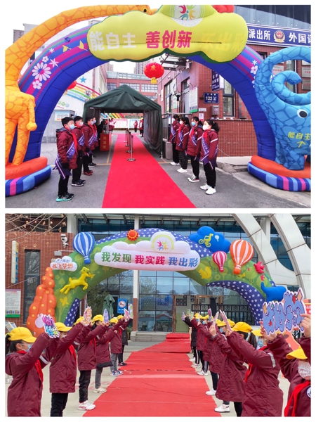領(lǐng)導(dǎo)班子在校門口迎接出彩果兒