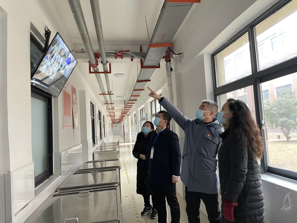 在校長(zhǎng)曹建峰、副校長(zhǎng)范書莉的陪同下,鄭州市中小學(xué)校責(zé)任督導(dǎo)王慧和田言輝檢查了學(xué)校疫情防控、食品安全、“雙減”“五項(xiàng)管理”落實(shí)情況、學(xué)校安全管理工作情況、以及環(huán)境整治情況等方面,深入教學(xué)樓的教室、辦公室、功能室等重點(diǎn)區(qū)域查看了通風(fēng)消毒、物資儲(chǔ)備、消殺記錄等情況。同時(shí),督導(dǎo)組深入廚房對(duì)學(xué)校食堂食品原料進(jìn)貨查驗(yàn)、操作間環(huán)境衛(wèi)生、學(xué)生餐具清洗消毒、就餐環(huán)境防疫措施落實(shí)以及從業(yè)人員健康管理等情況進(jìn)行全面檢查,詳細(xì)了解了學(xué)校了學(xué)校食品安全建設(shè)。最后督導(dǎo)組在黨建室對(duì)學(xué)校的“雙減政策”和“五項(xiàng)管理”工作落實(shí)情況進(jìn)行了全面、深入、細(xì)致的視導(dǎo),并進(jìn)行了座談?wù){(diào)研,了解了紫東路小學(xué)各項(xiàng)“雙減”工作的開展情況,針對(duì)存在的問題提出了整改意見。在實(shí)地檢查和聽取匯報(bào)后,督導(dǎo)組對(duì)學(xué)校開學(xué)工作給予了充分肯定和高度評(píng)價(jià),并對(duì)學(xué)校后續(xù)工作提出了建議:學(xué)校要進(jìn)一步落實(shí)落細(xì)防控措施,看好門、盯好人、管好事,堅(jiān)決將病毒阻擋在校園之外,要真正落實(shí)“雙減”“五項(xiàng)管理”政策,讓每一個(gè)學(xué)生平安、健康成長(zhǎng)。