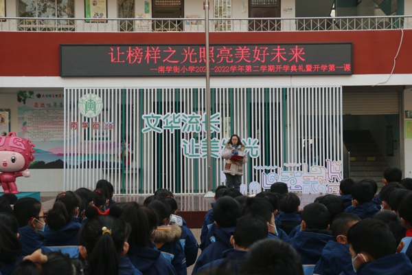 中新河南網(wǎng)2月22日電(吳勇強)瑞虎送春,萬象更新。近日,管城區(qū)南學街小學在操場開展了以“讓榜樣之光照亮美好未來”為主題的開學典禮暨開學第一課活動。