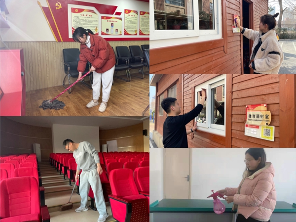 活動前,校長曹建峰帶領(lǐng)學(xué)校班子成員進(jìn)行了精心安排,周密布置,并制定了相應(yīng)的活動方案,要求各辦公室、功能室、教室負(fù)責(zé)人嚴(yán)格落實責(zé)任制,把每一項任務(wù)、每一個要求具體分解、責(zé)任到人。活動中,校園里到處涌動著師生們忙碌的身影,大家齊心協(xié)力,干得熱火朝天,對校園、教室、功能室、課桌椅、門窗、走廊、樓梯、衛(wèi)生間等地方進(jìn)行全面打掃,認(rèn)真清理衛(wèi)生死角。同時,老師們嚴(yán)格按照衛(wèi)生消殺管理的標(biāo)準(zhǔn)重點(diǎn)對樓道、飲水池、廁所、垃圾箱和垃圾池等角落進(jìn)行消毒并做好消殺記錄,真正做到全覆蓋、無遺漏。經(jīng)過大家的共同努力,校園的環(huán)境衛(wèi)生得到進(jìn)一步改善,校園面貌煥然一新。