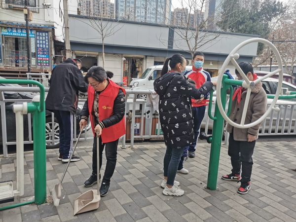 3月4日上午,學校黨支部成員帶領(lǐng)高年級學生參加社區(qū)志愿者活動。打掃校園周邊社區(qū)環(huán)境衛(wèi)生,擦拭健身器材及人行道欄桿。